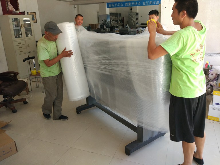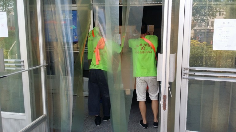 大連喜遷搬家公司的工人講衛生,剛換的夏季新工作服,好鮮豔哦!專業的搬家公司,體貼的衛生制度。